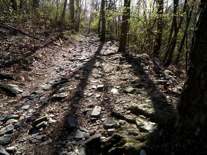 Published April 28, 2013 at 4320 × 3240 in 4/21/2013 Thurston Griggs Trail to Black Rocks on the Maryland AT DSC03596 Up the rocky path to the Pogo campground on AT ← Previous Next →