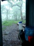 OMG…rain again? I just finished dinner when in rolled the fog over the mountain and it started to pour…I mean dump buckets! and the wind, good Lord. At least there is no lightning! So over the rain. At least Fart Blossom got her hammock up before it started and I am in the shelter. Hopefully, the wind doesn’t blow the water in the shelter! Unfuckingbelievable. Seriously! I am going to believe that when I get ready to hide the bear vault it will stop! AND IT WILL NOT RAIN TOMORROW!!!!