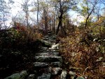 After reaching the ridge, the walking was easy for awhile. A nice flat, wide trail with very few rocks. The sun pushed through the leaves of red and gold making for a beautiful autumn morning. I truly enjoyed that whole twenty minutes before we hit the rocks in force again!!! 😉