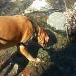 Soon we descended again and found a creek we needed to cross…a little tricky when holding a leash…but not too bad.