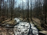 Following the Catoctin Trail, we descended back down to cross the road and enter Owen Creek Campground (closed when we were there). About a hundred feet after crossing the creek the trail cuts off to the right and again heads up to the opposite ridge steeply.