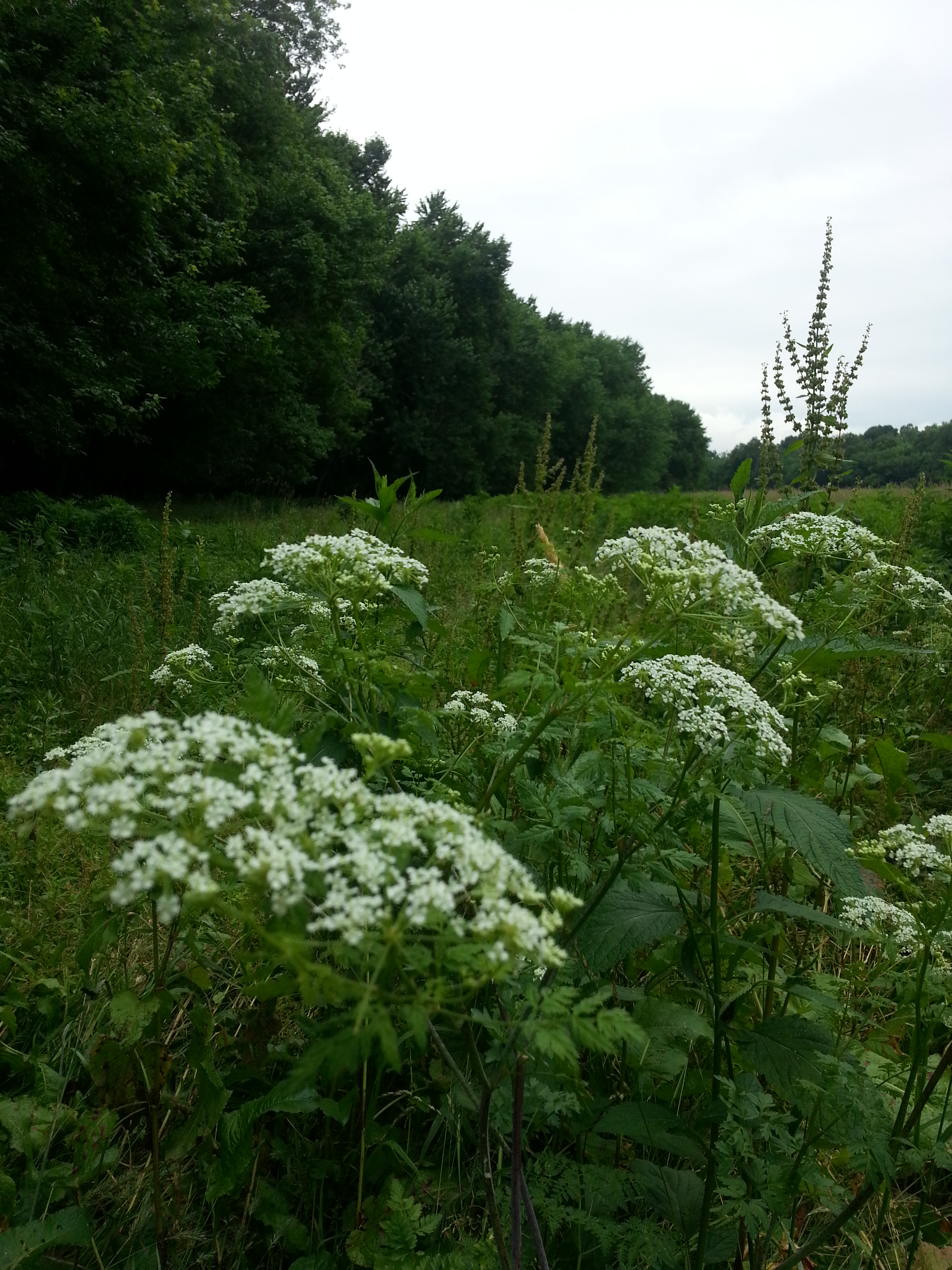 On Saturday we hit the trail together, me and Sidekick Pauli! To begin our hike we meandered down by the Monocacy River which was large, fast and red due to recent thunderstorms. While the river was swollen, the trail was itself was in good shape…only a few muddy spots. Along the side of the trail and the edge of the meadow Queen Anne’s Lace was standing regally insisting the passerby stop and give their respect and adoration.