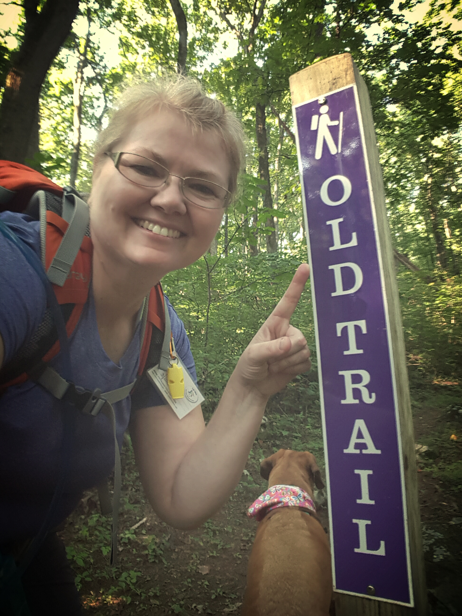When the Hadow Trail intersected with the Boston Mill Road, we turned left to pick up the South Ridge Trail. Well, I could tell it was still summer as the sun rose higher in the sky and we did the same. Whew, broke a sweat! Sidekick Pauli needed two water breaks before we made the ridgeline by taking the North Ridge Trail up the final ascent to the AT.